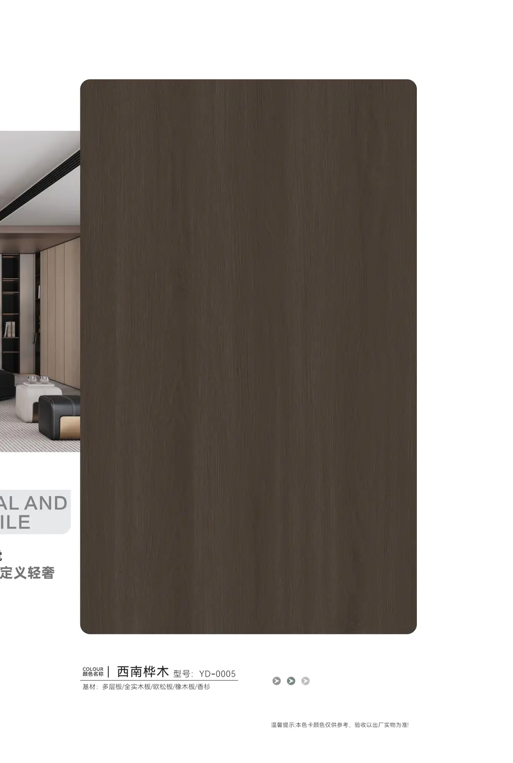 永典生态家具板,以缤纷绚丽的丰富花色,满足您对家居美学的多元想象;更以卓越非凡的实用性能,重新定义品质生活标准。板材免漆工艺,天然形成保护膜,集耐磨、耐高温、耐腐蚀、防潮等优异性能于一体,兼具低碳环保与超强握钉力,表面历久弥新,不褪色不起皮,汇聚了天然木材难以兼备的多重优势。它广泛应用于整体衣柜、橱柜、电视柜及商业空间等各类场景,加工自如,贴面质感强烈。在简化生产工序、提升产品附加值的同时,真正为消费者节省装修成本与人工开支,让绿色健康与时尚美观完美共生。