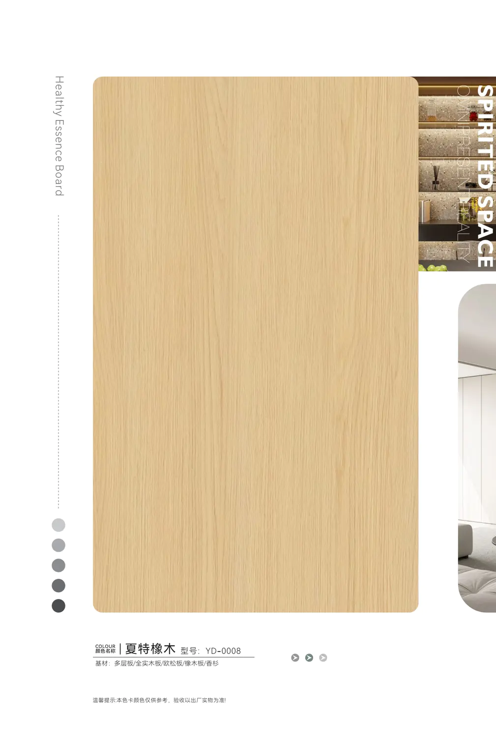 永典生态家具板,以缤纷绚丽的丰富花色,满足您对家居美学的多元想象;更以卓越非凡的实用性能,重新定义品质生活标准。板材免漆工艺,天然形成保护膜,集耐磨、耐高温、耐腐蚀、防潮等优异性能于一体,兼具低碳环保与超强握钉力,表面历久弥新,不褪色不起皮,汇聚了天然木材难以兼备的多重优势。它广泛应用于整体衣柜、橱柜、电视柜及商业空间等各类场景,加工自如,贴面质感强烈。在简化生产工序、提升产品附加值的同时,真正为消费者节省装修成本与人工开支,让绿色健康与时尚美观完美共生。