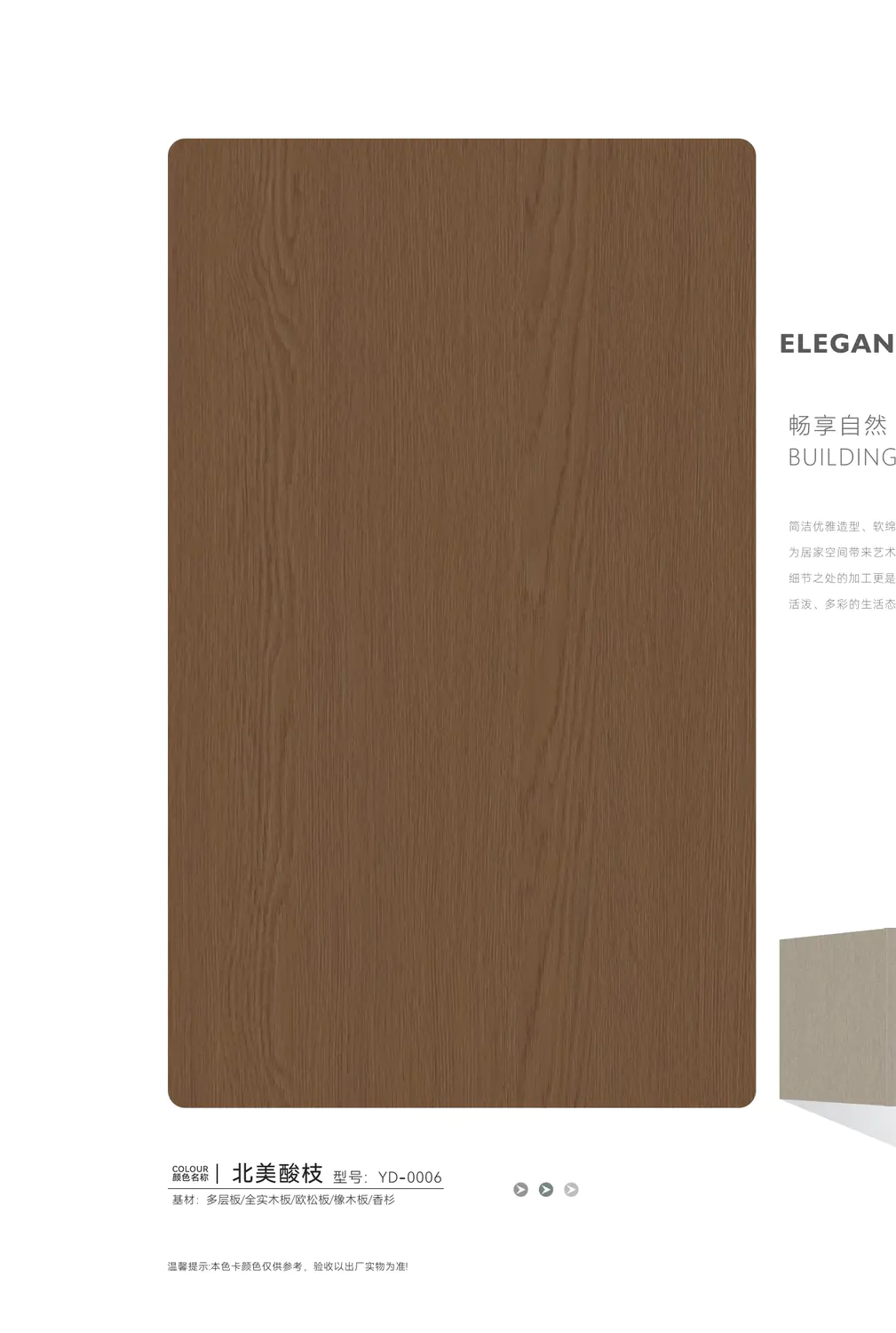永典生态家具板,以缤纷绚丽的丰富花色,满足您对家居美学的多元想象;更以卓越非凡的实用性能,重新定义品质生活标准。板材免漆工艺,天然形成保护膜,集耐磨、耐高温、耐腐蚀、防潮等优异性能于一体,兼具低碳环保与超强握钉力,表面历久弥新,不褪色不起皮,汇聚了天然木材难以兼备的多重优势。它广泛应用于整体衣柜、橱柜、电视柜及商业空间等各类场景,加工自如,贴面质感强烈。在简化生产工序、提升产品附加值的同时,真正为消费者节省装修成本与人工开支,让绿色健康与时尚美观完美共生。